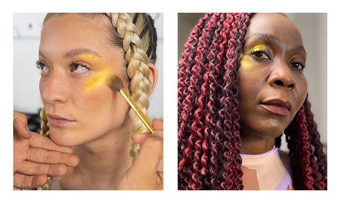 Para el maquillaje de ojos, optaron por un mix de dorados, seleccionados de varias paletas. Y para darle aún más fuerza a este look de impacto, usaron el rímel Volumetric.